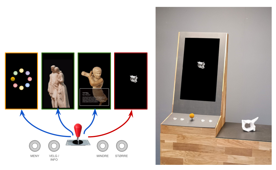 Ingvard og jeg presenterer det som blir en avslutning på prosjektet Fysiske og virtuelle visningsrom. Prosjektet har vært støttet med nettverksmidler fra UH-nett Vest. Vi har ikke kommet fullt så langt som vi håpet, men har kommet til en prototypefase der ting er blitt temmelig konkrete. Ikke minst fordi Ingvard har laget fysiske montere, som vi fyller med litt elektronikk og kode laget av Johannes Ringheim.